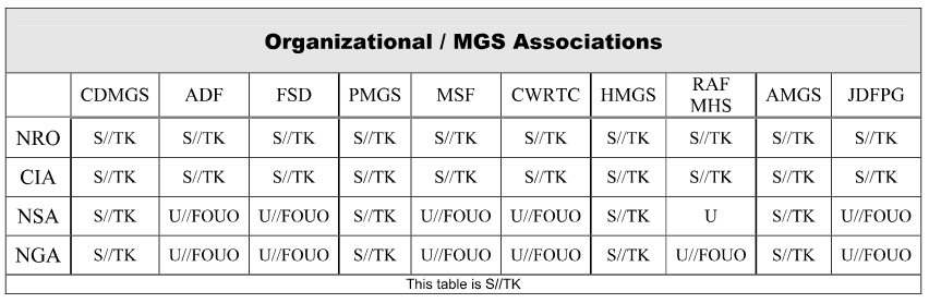 - "Potomac Mission Ground Station (PMGS)" = S//TK (SECRET)